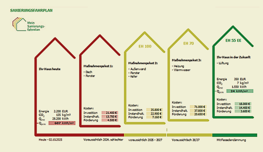 Der Plan hilft Ihnen, die Sanierung kosteneffizient und vorausschauend zu gestalten.
